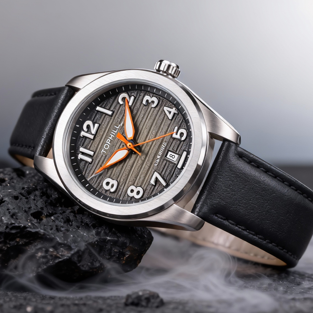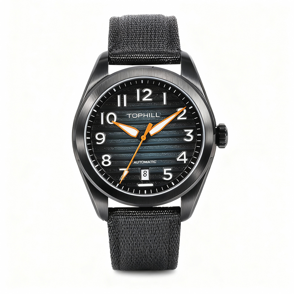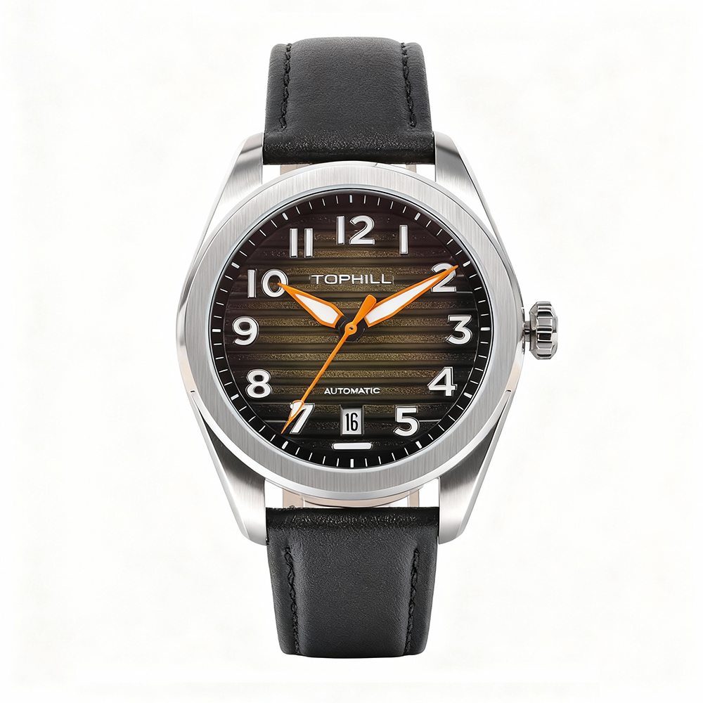 Mechanical watch with 316L stainless steel strap and NH35 movement. Customized watch.